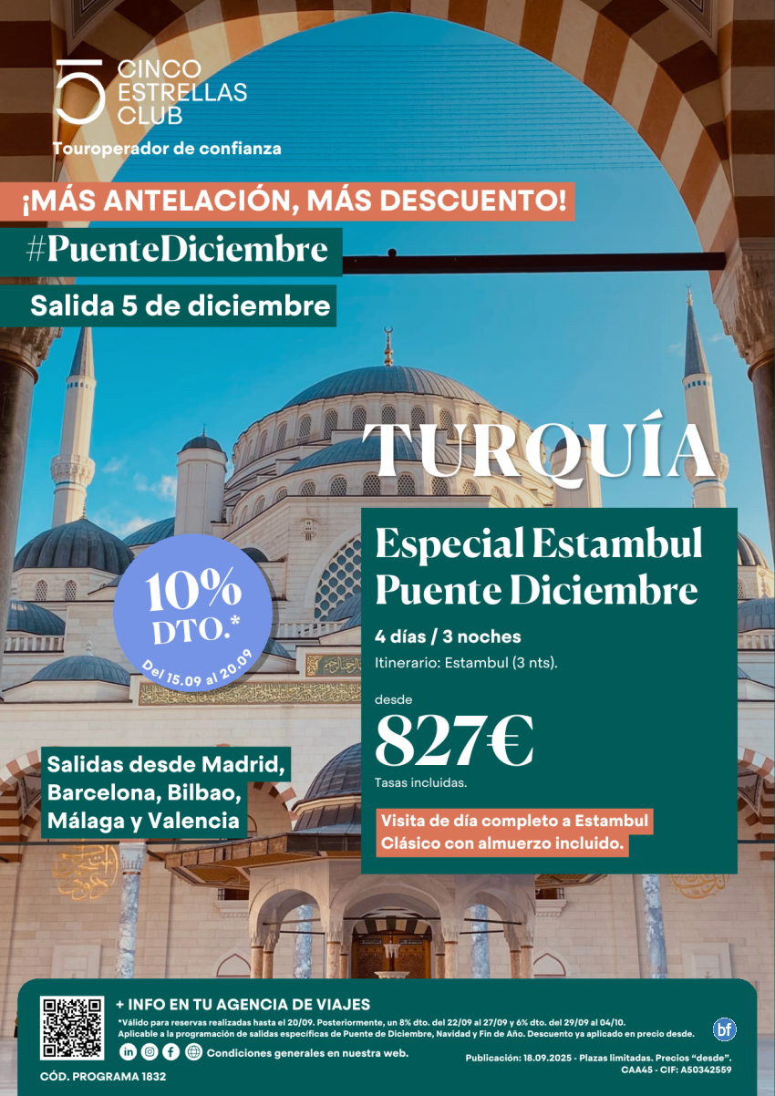 Puente Diciembre! Especial Estambul desde 827€ 4d/3n Salida 05 Diciembre desde Mad, Bcn. Bio, Agp y Vlc